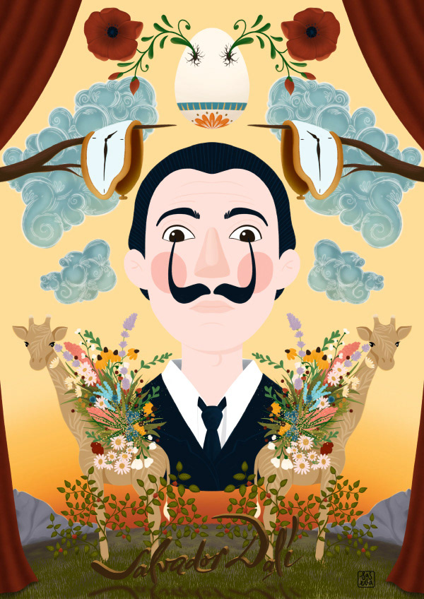 Seria Slavic jest jednym z moich bieżących projektów, w których ilustruję swoich ulubionych artystów w otoczeniu wschodnioeuropejskich roślin. Serię zapoczątkowała Słowiańska Frida w makowym wianku, otoczona bluszczem i paprociami. Dwa miesiące później powstał Slavic Dali, mój osobisty faworyt, z ukwieconymi żyrafami w krzewach malin. Najnowszym plakatem w kolekcji jest Slavic Magritte. Wkrótce do tej trójki dołączą kolejni artyści, ale na razie cicho-sza.